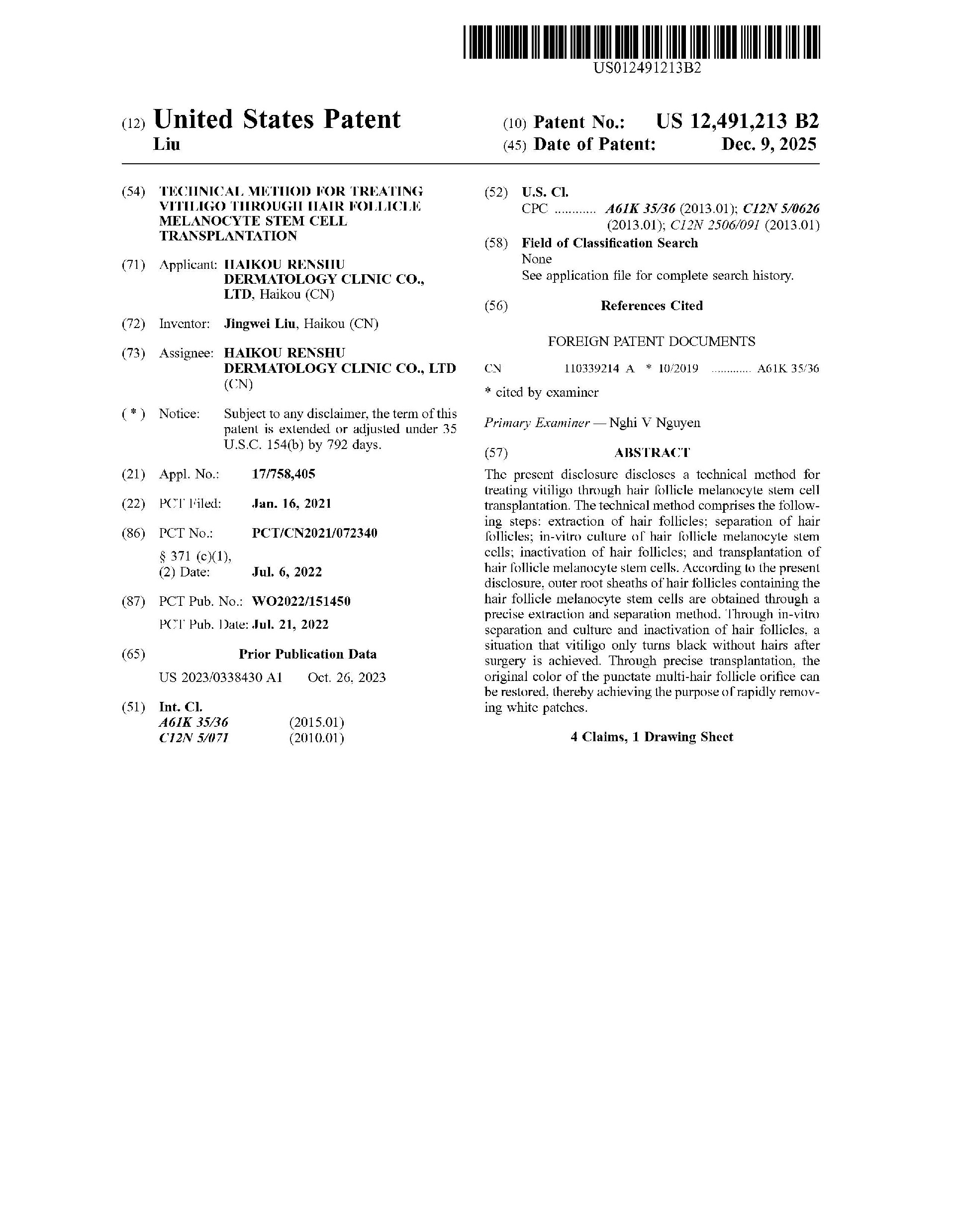 相较于药物治疗,手术治疗方式实则更为迅速且稳定。其中,一项新疗法——完整的外毛根鞘移植术,该技术由我国白癜风专家刘景卫团队研发,斩获国际PCT专利与美国专利认证,临床价值突出。该疗法不仅能使白斑复色迅速且均匀,而且适用于任何部位、不同年龄以及各种时期的白癜风,手术不再需要磨皮取皮,基本无创伤,不用担心手术疼痛、留瘢痕、复色不均匀等问题,复色后白斑复白的几率较低,是目前治疗白癜风效果较为稳定的方法之一。